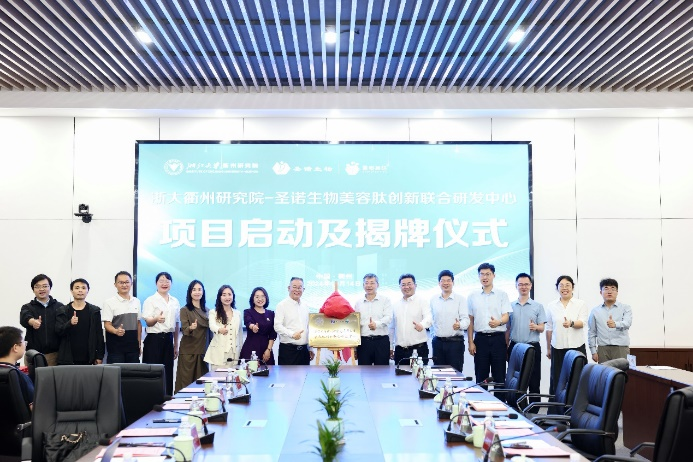 2024年10月14日,“浙江大學(xué)衢州研究院-圣諾生物美容肽創(chuàng)新聯(lián)合研發(fā)中心” 項(xiàng)目啟動(dòng)及揭牌儀式在浙江大學(xué)衢州常山港院區(qū)隆重舉行。